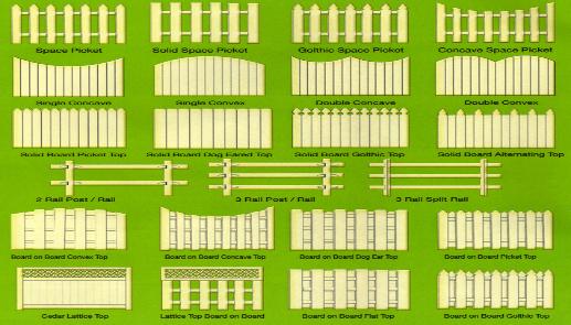 HEIGHTS- 3' 6' 4' 7' 5' 8' WOOD TYPE- CEDAR SPRUCE P\T TOP STYLES- FLAT CONCAVE DOMED DOG EAR GOTHIC PICKET |
